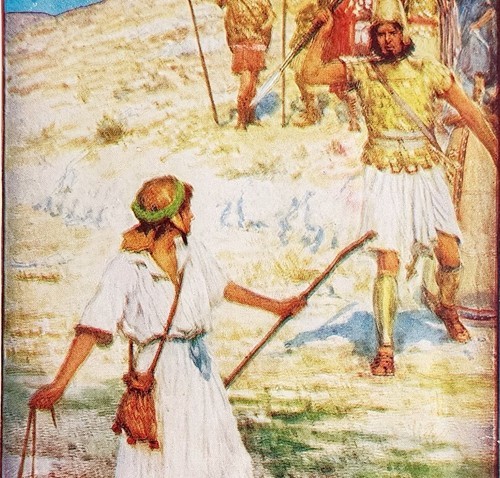 - 1906 David And Goliath of Gath Print Story Of The Bible 8.25 x 5.75" Antique Art