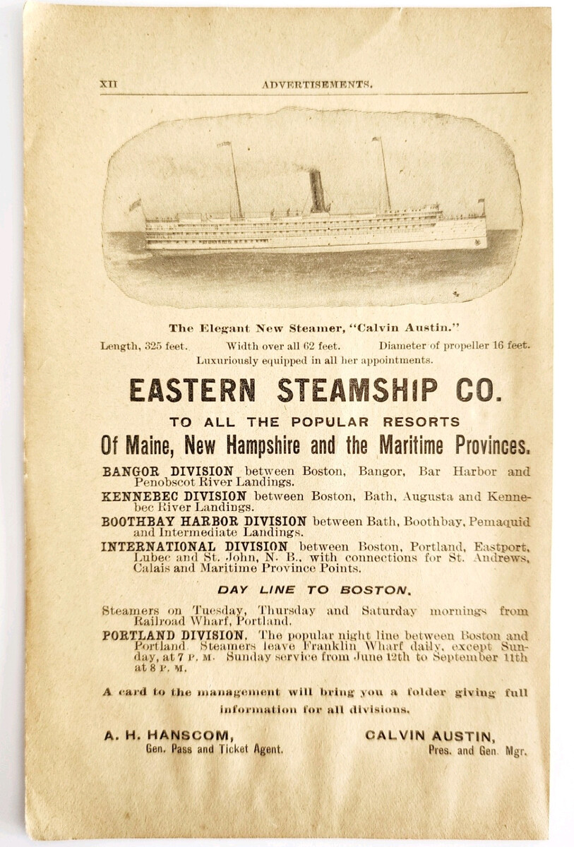 - 1906 Eastern Steamship Calvin Austin Advertisement Maine Maritime Nautical E17H