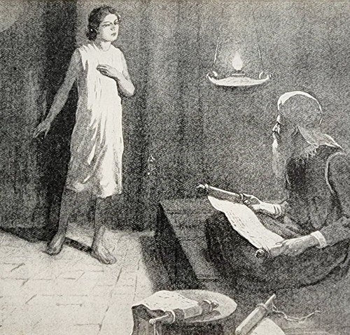 - 1906 The Boy In the Temple Print Story Of The Bible 8.25 X 5.75" Antique Art