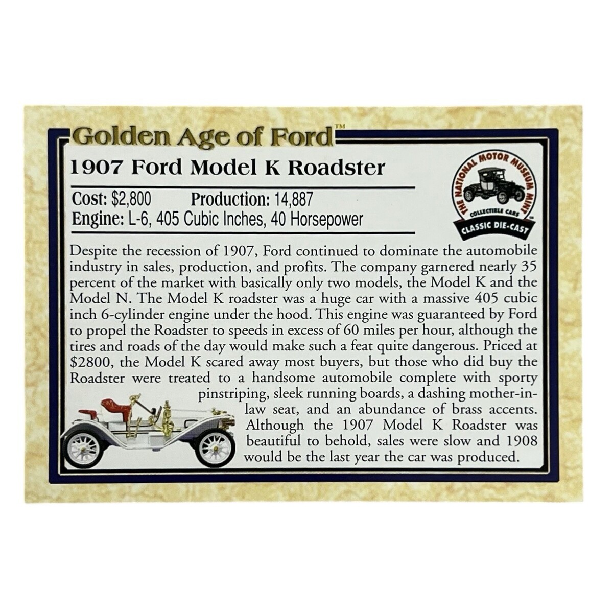 Great addition for Ford collectors, early brass-era automotive enthusiasts, and anyone completing a National Motor Museum Mint series. Detailed styling, bright colors, and included info card make this a standout shelf piece.
