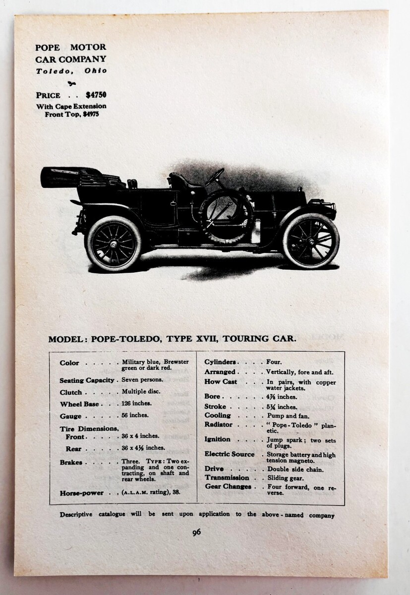 - 1908 Pope Toledo Type XVII Touring Car Print Catalog Advertisement Auto F14F