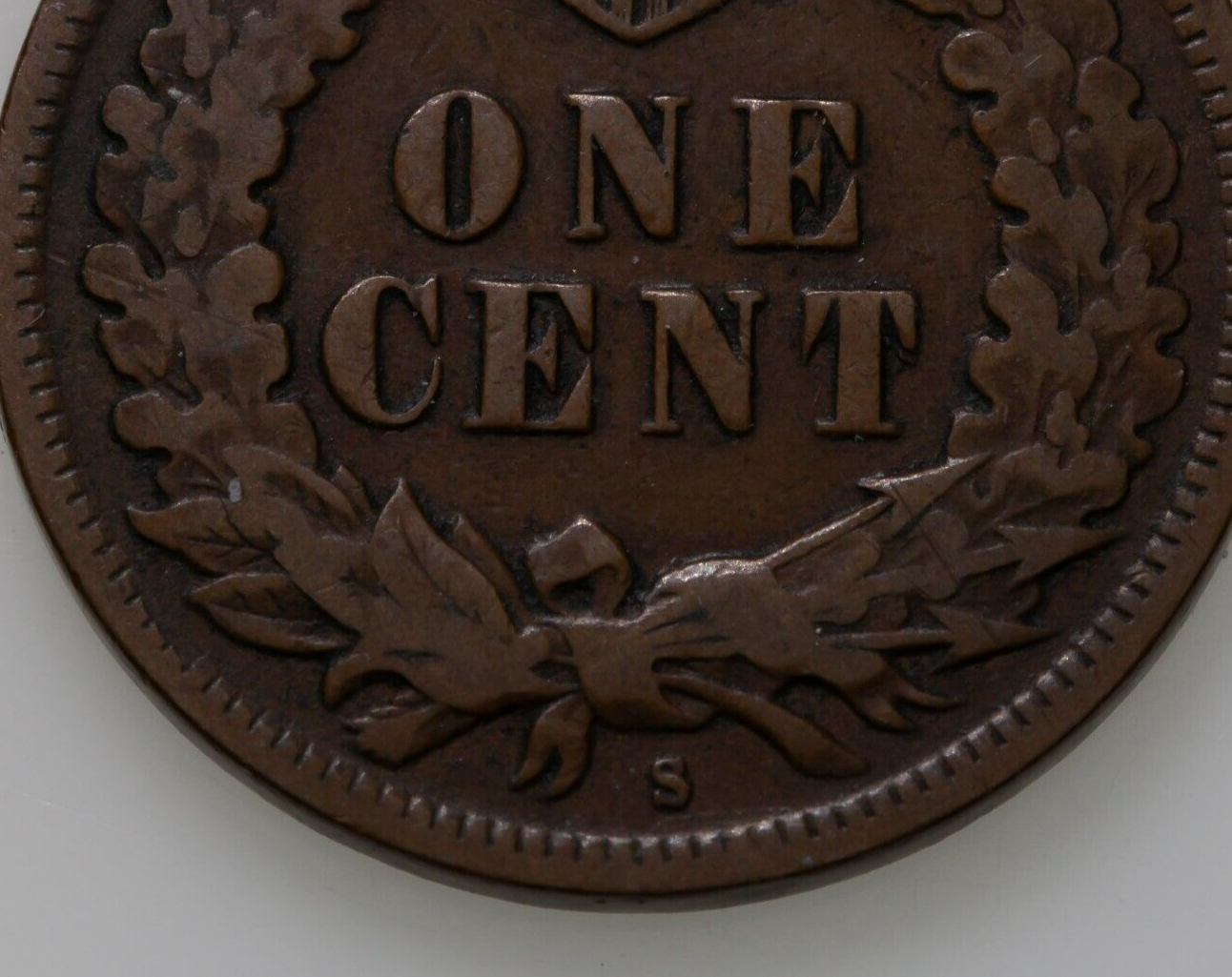 - 1908-S 1C Indian Cent in Fine Condition, All Brown Color, Fully Readable LIBERTY