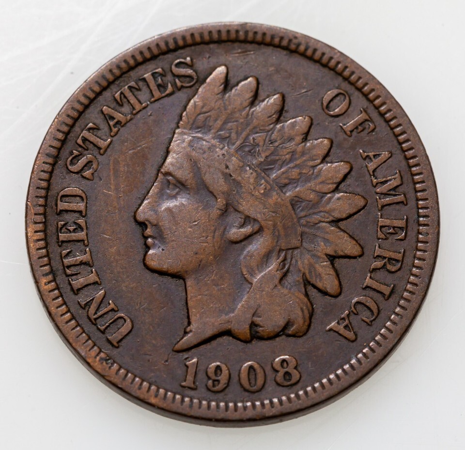 - 1908-S 1C Indian Cent in Fine Condition, All Brown Color, "LIBERTY" is Full