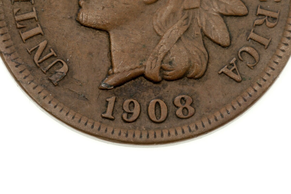 1908-S 1C Indiano Cent IN Extra Sottile XF Condizioni,Marrone Colore,Nichelino