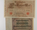 - 1910-1923 Germany 2-Note Currency Set Empire 1000 Mark Weimar 500,000 MARK