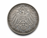 Il rovescio mostra con orgoglio la maestosa aquila imperiale tedesca incoronata, con scritta "DEUTSCHES RICH 1911 THREE MARK", che riflette i motivi di design dell'epoca. Questa restrizione meticolosamente realizzata cattura l'essenza dell'arte numismatica tedesca dell'inizio del XX secolo, rendendolo un oggetto da collezione eccezionale. Serve come affascinante segno di un'epoca passata, attirando sia gli appassionati di numismatica che gli appassionati di storia.