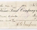 - 1912 Kineo Trust Company Bank Check E.A. Sampson Dover Maine Signed Antique CHX1