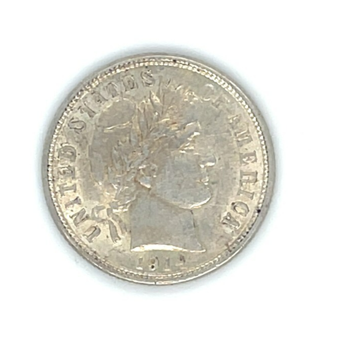 - 1914-D Barber Dime AU+ Excellent Eye Appeal, Full Mint Luster and Light Toning