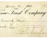 - 1914 Kineo Trust Company Bank Check E.A. Sampson Dover Maine Signed 6218 CHX10