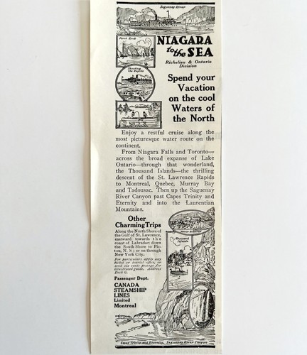 1914 Steamship Niagara of the Sea Advertisement WW1 Niagara Falls Cruise