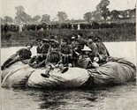 - 1914 WW1 Print British Troops Crossing River Antique Military Period Collectible