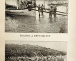 - 1914 WW1 Print Navy Loading Machine Gun Antique Military Period Collectible