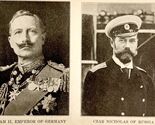 - 1914 WW1 Print William II and Czar Nicholas Antique Military Period Collectible