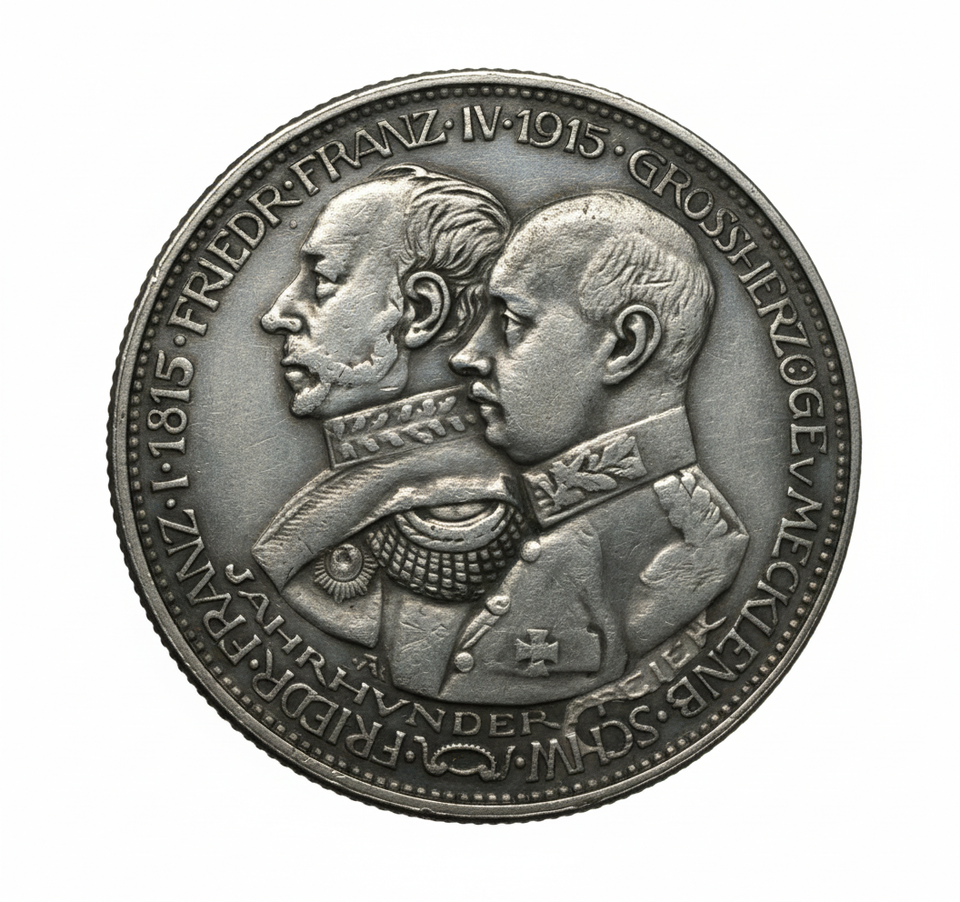 1915 Alemania Mecklemburgo-Schwerin Grandes Duques Arte Conmemorativo Restrike