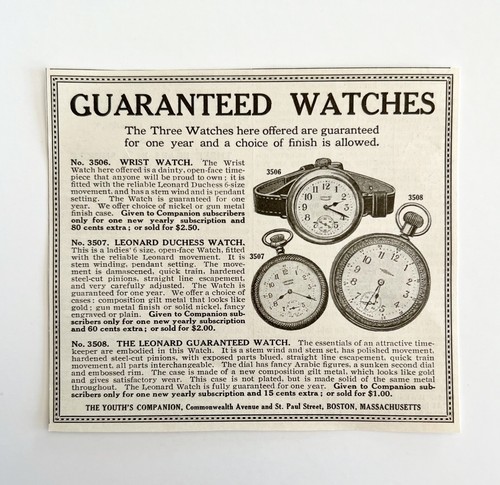 - 1916 Guaranteed Watches Youth's Companion Advertisement Jewelry Ephemera DWMYC2