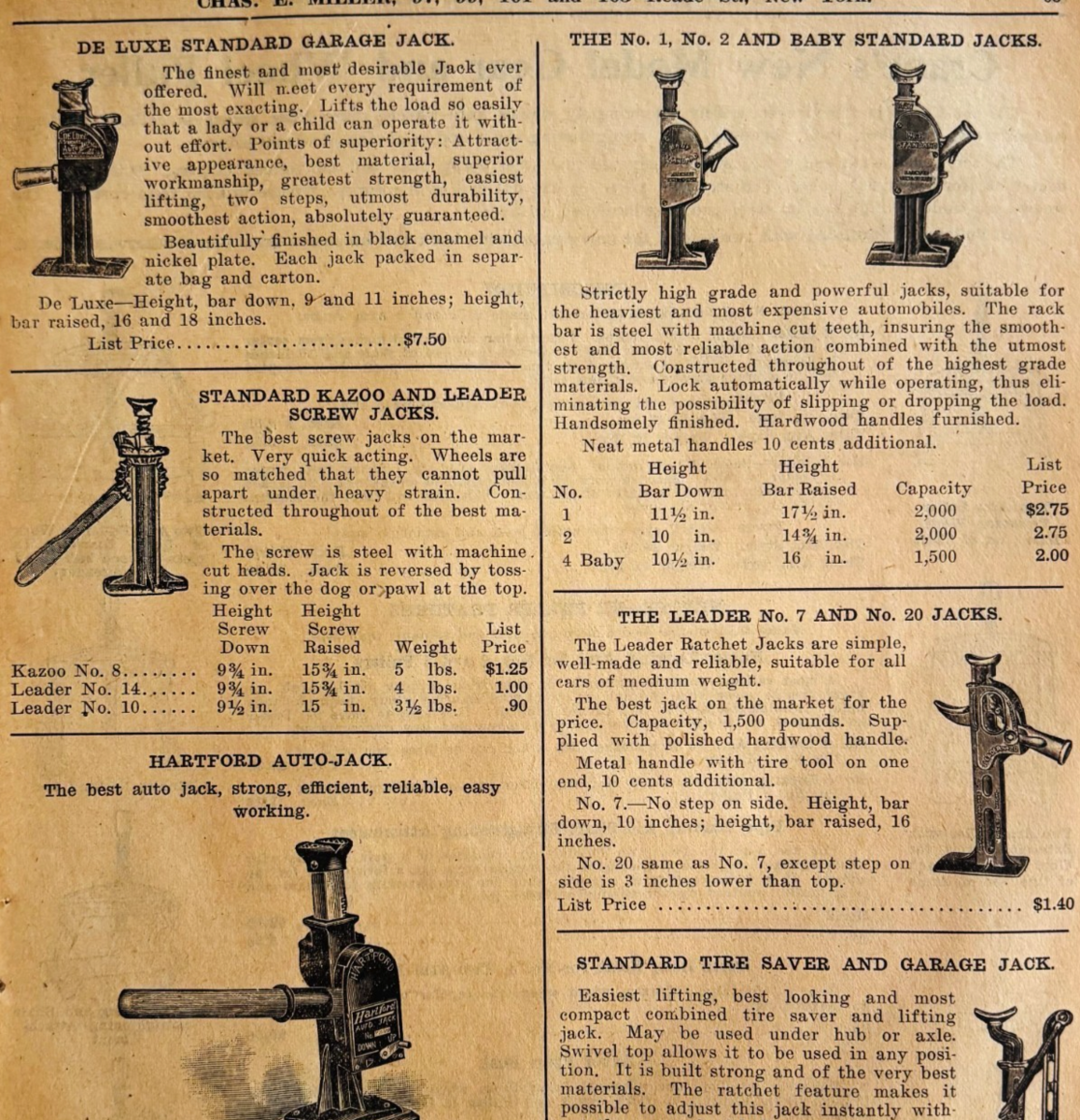 - 1917 Garage Automotive Jacks Advertisement Chas Miller Automobilia F15A