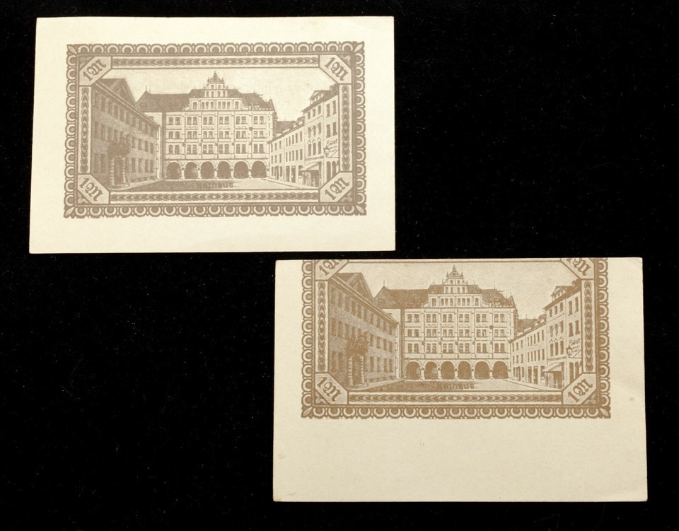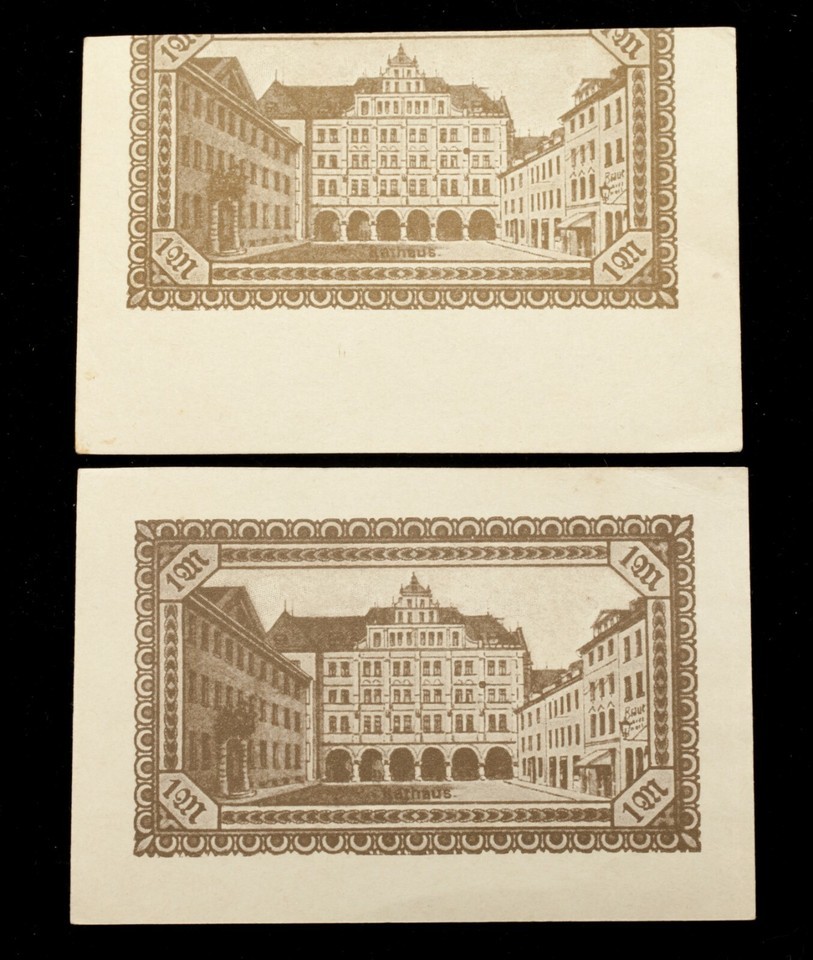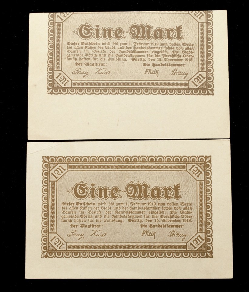 1918 Notgeld Money Error Note - 2pc Set de Gorlitz, Allemagne // Erreur d'alignement