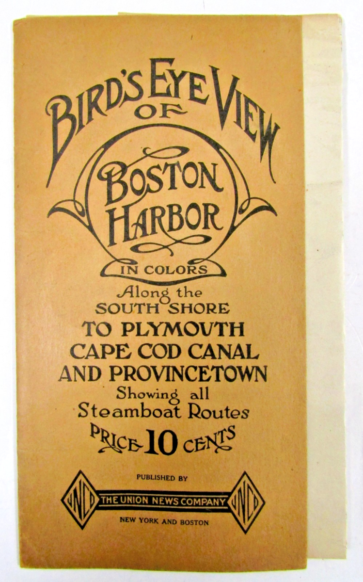 1920 Bird's Eye View of Boston Harbor in Colors Along the South Shore to Plymouth Cape Cod Canal and Provincetown Showing all Steamboat Routes by The Union News Co.