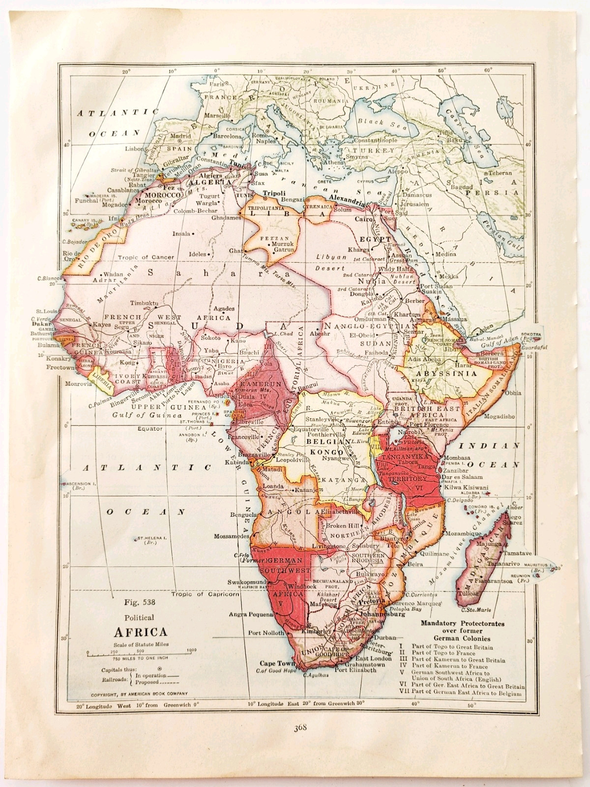 1920 Map Africa Political Sudan Egypt Madagascar Sahara Desert Kongo DWQ4