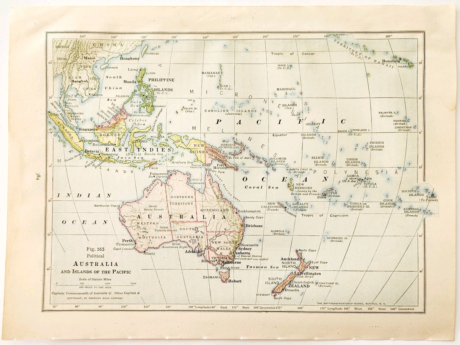 - 1920 Map Australia New Zealand Oceania Pacific Islands Political Boundary DWQ5