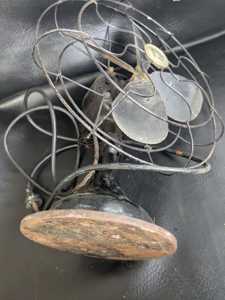 Le ventilateur oscillant Robbins Myers 1204 de 18 pouces a 3 vitesses et 4 pales de 1920 est un ventilateur electrique vintage concu pour une utilisation en interieur. Avec une forme ronde et un diametre de pale de 12 pouces, ce ventilateur antique presente une construction en fonte et une finition noire. Fabrique aux Etats-Unis au debut du 20e siecle, ce ventilateur de table/bureau est equipe d'un interrupteur permettant de regler la vitesse et possede la fonction d'oscillation originale. Le charme vintage et l'importance historique du ventilateur en font un ajout unique et precieux a n'importe quelle piece ou collection.