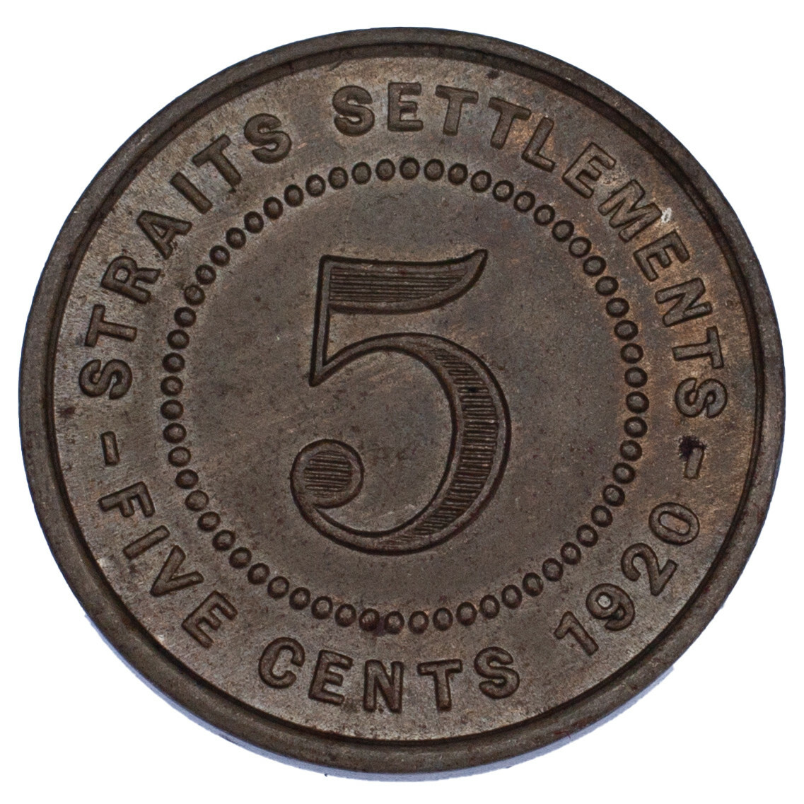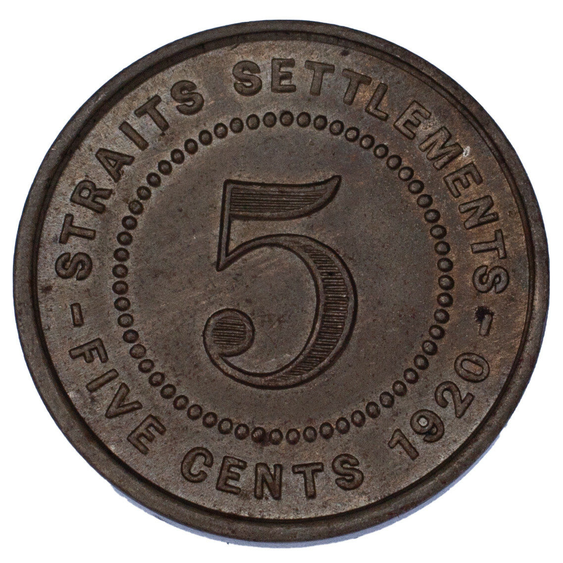 1920 Straits Colonies 5 Centimes En XF, Km #34- show original title Original...