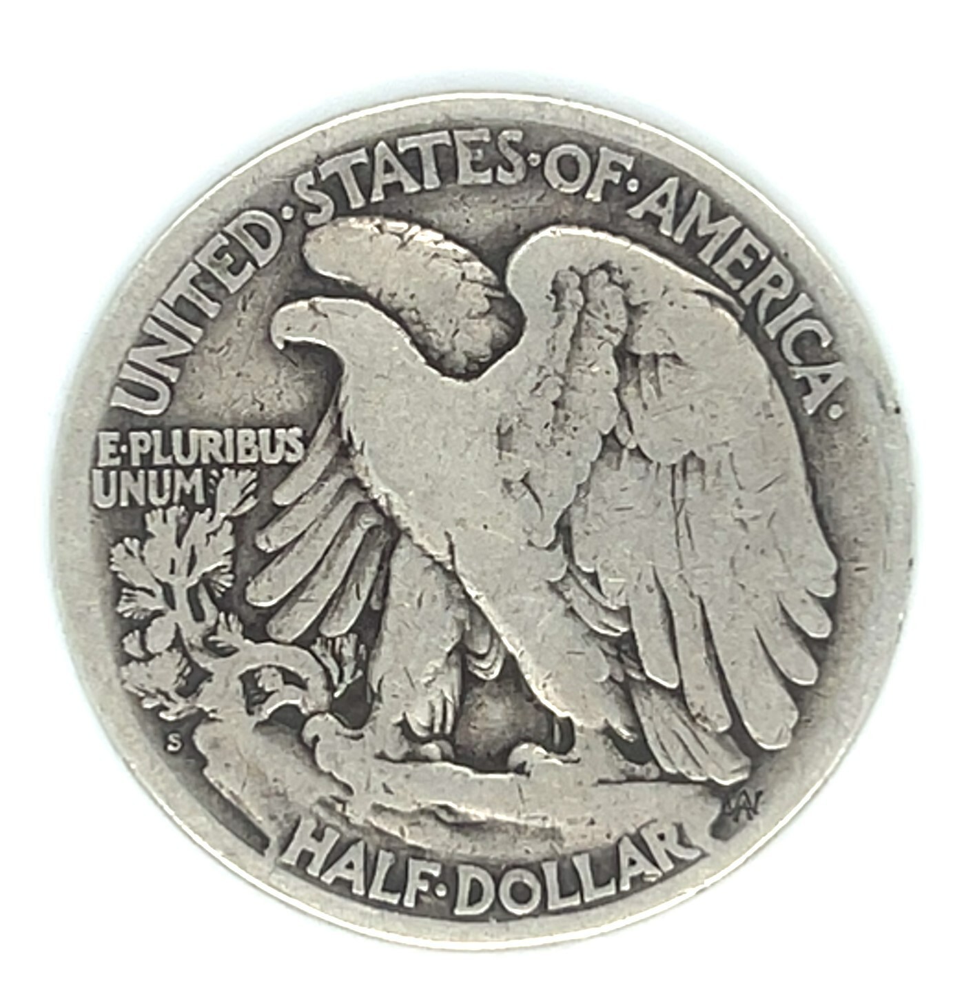 - 1921-S 50C Walking Liberty Half Dollar Very Good VG Natural Color Complete Rims