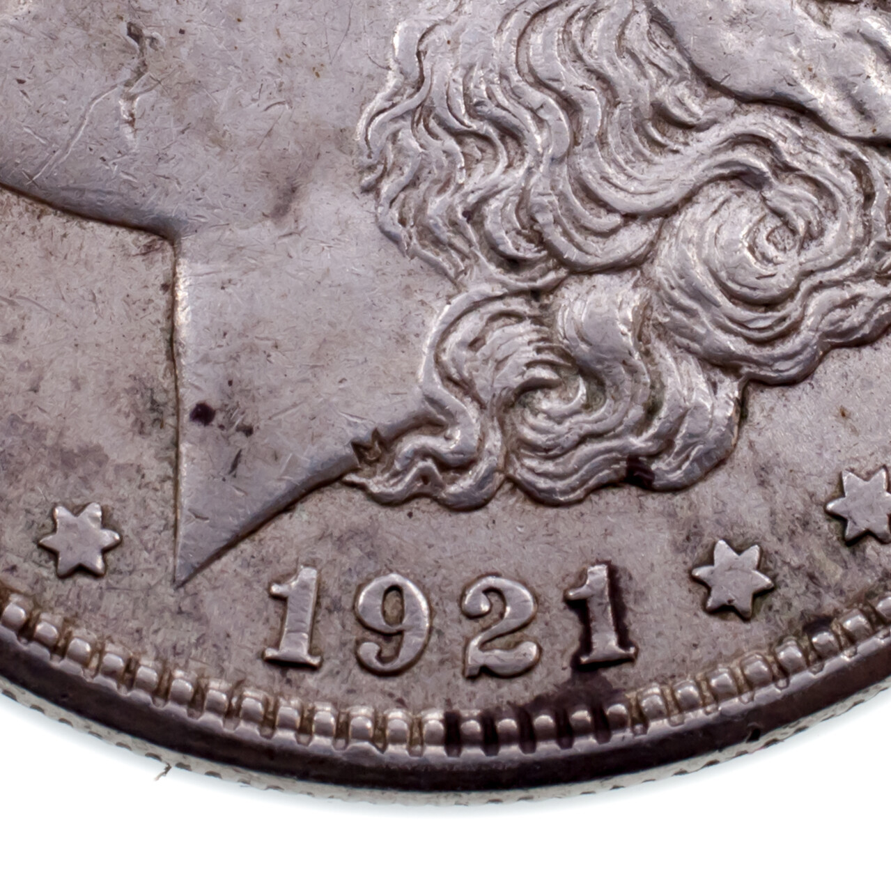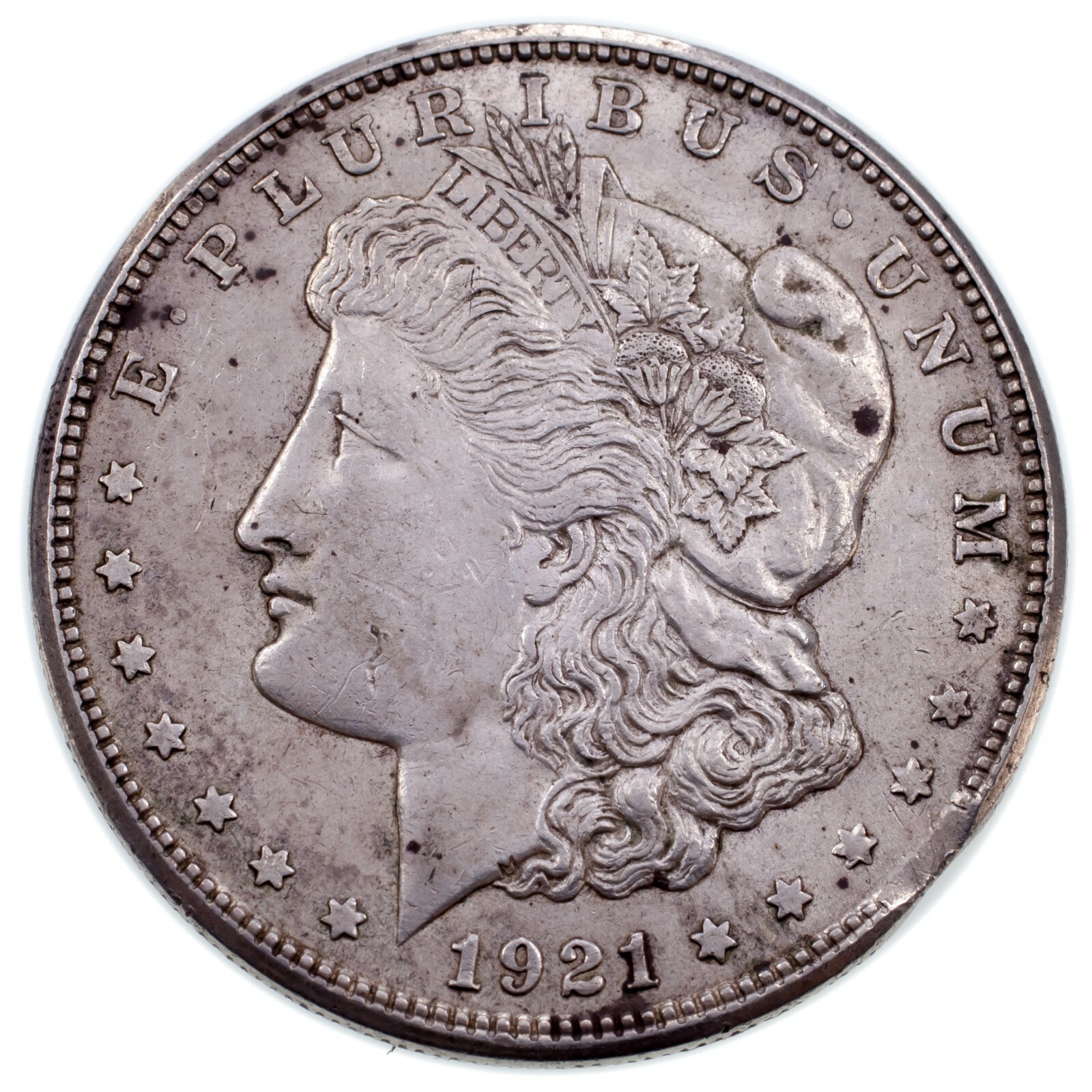1921 Silver Morgan Dollar "Coupe" Variety In XF Condition. Clamp In 4:0 0- sh...
