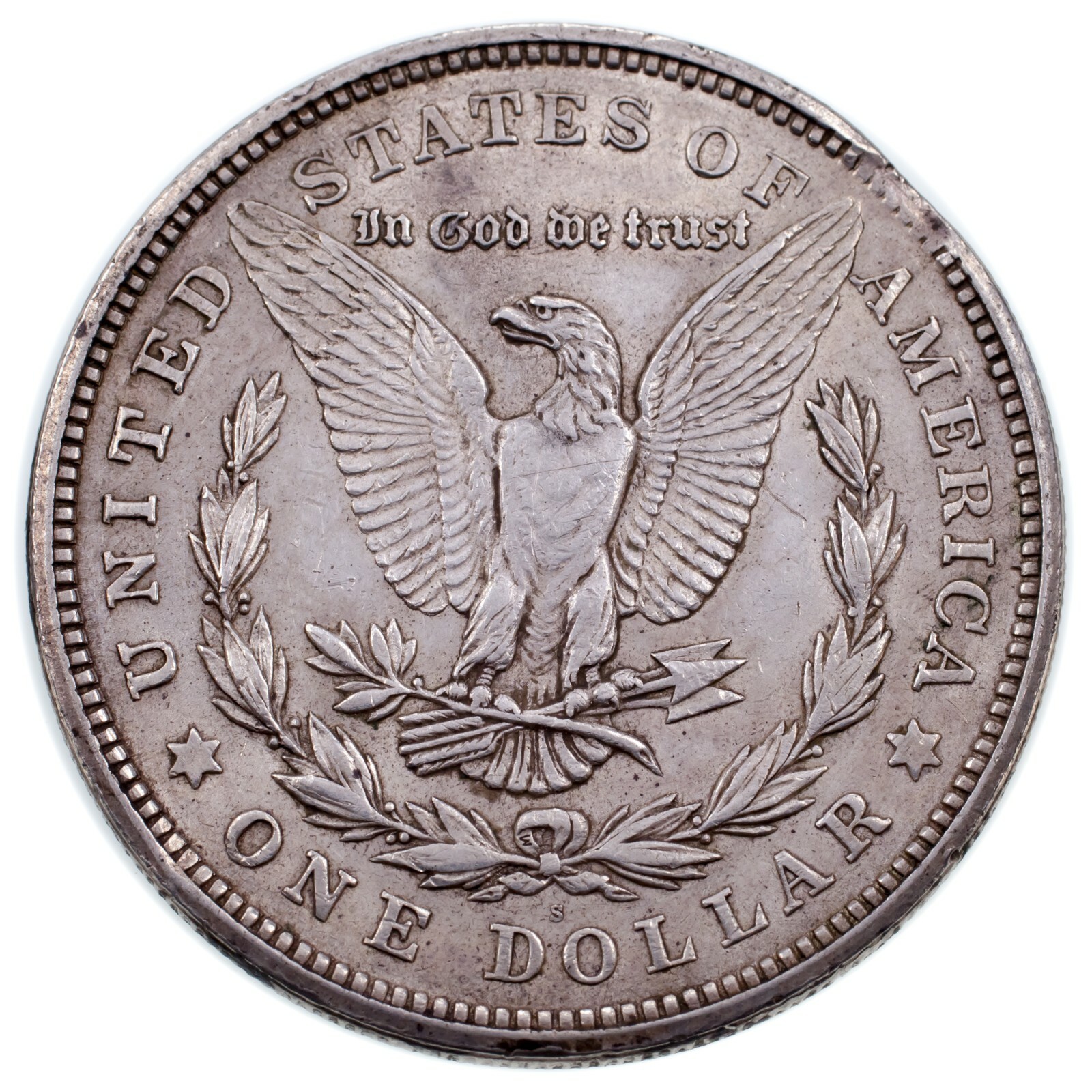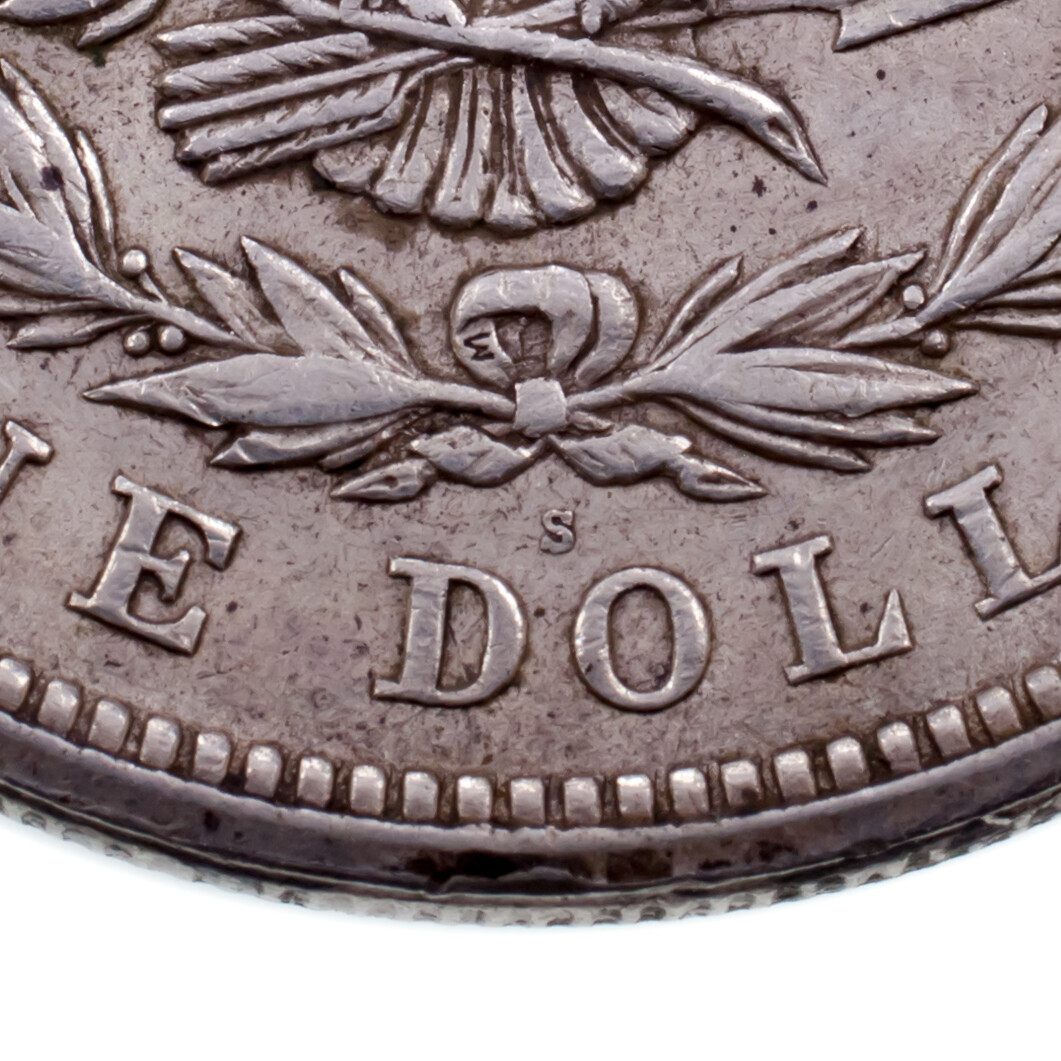 - 1921 Silver Morgan Dollar "Coupe" Variety In XF Condition. Clamp In 4:0 0- sh...