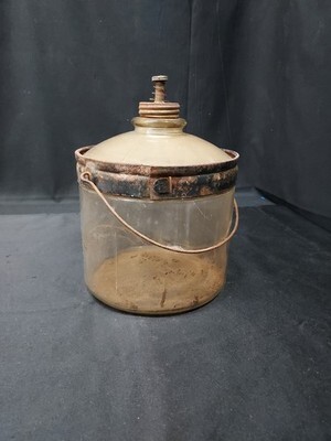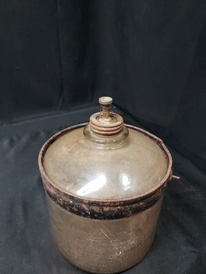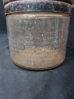 - 1923 Glass Perfection Stove Oil Jar Triangle Mark Bottle Kerosene Jug EMBOSSED