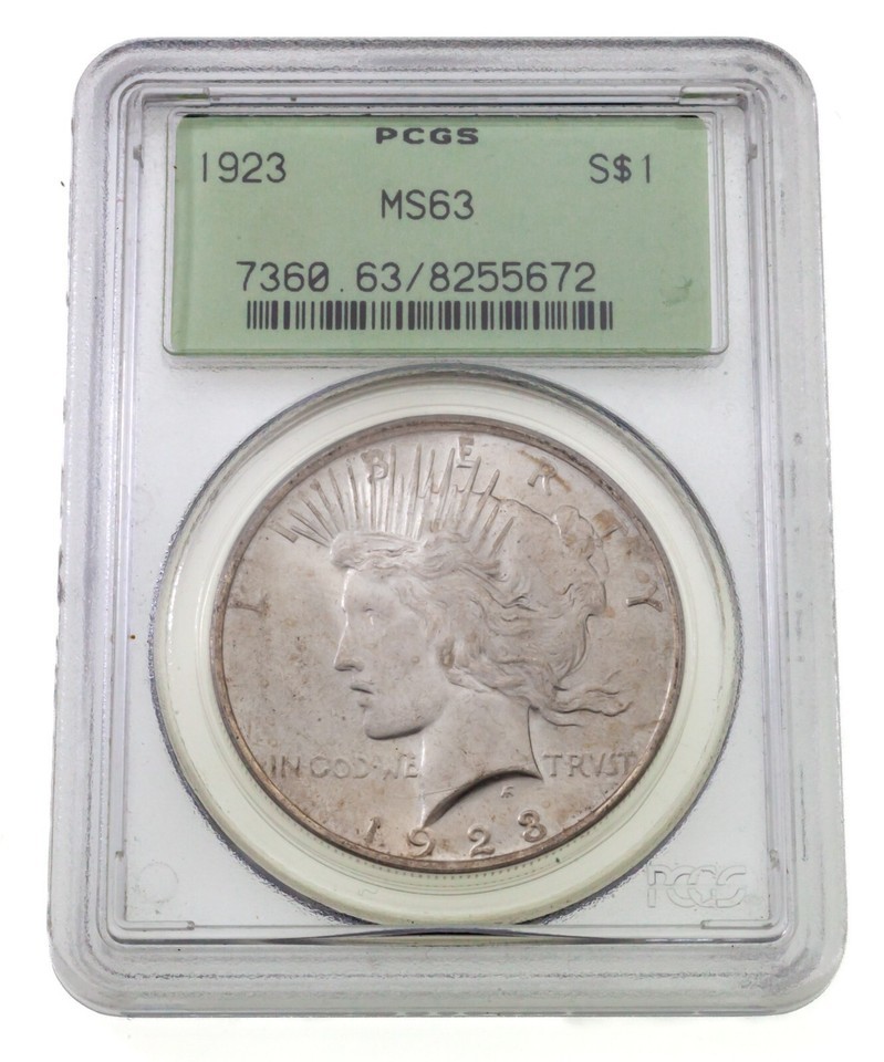 - 1923 Silver Peace Dollar Graded by PCGS as MS-63