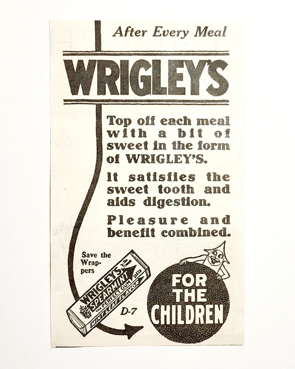 1923 Wrigley's Chewing Gum Advertisement For the Child Ephemera Candy 4 x 2.25"