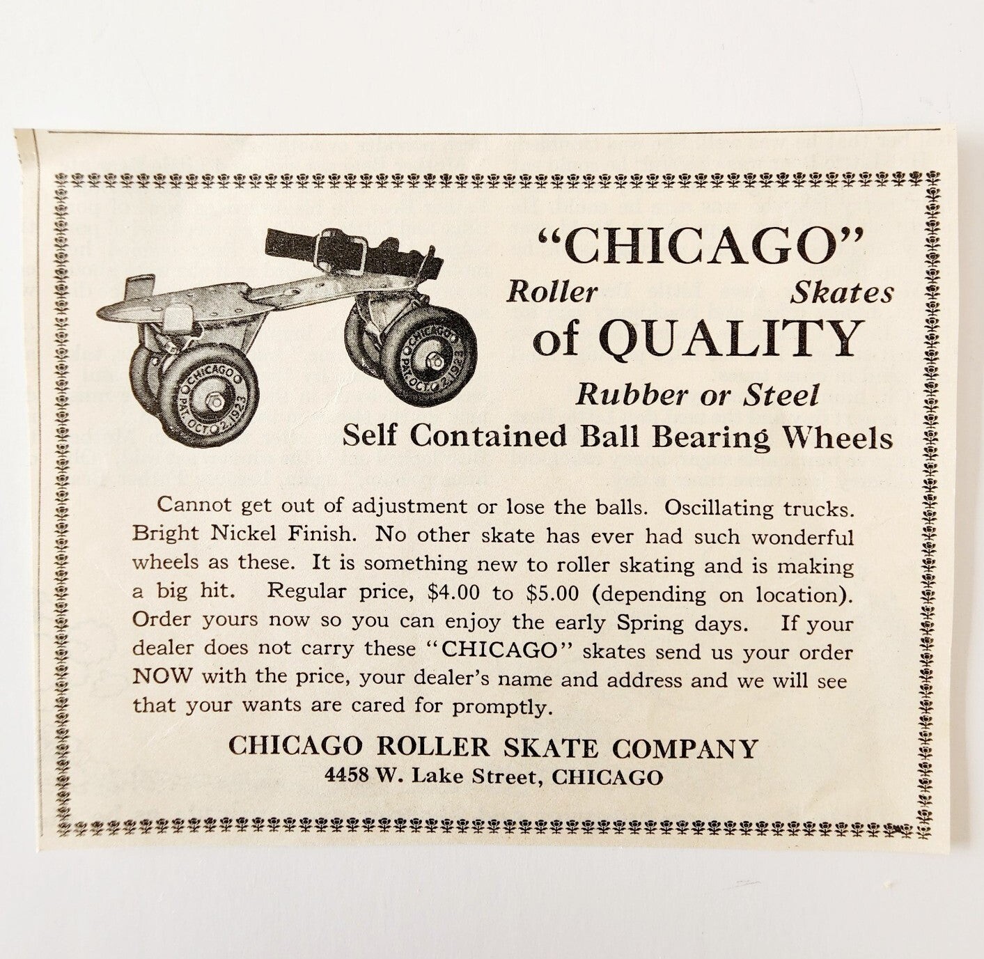 1924 Chicago Roller Skate Company Advertisement Sports Ephemera 4.75 x 3.75"