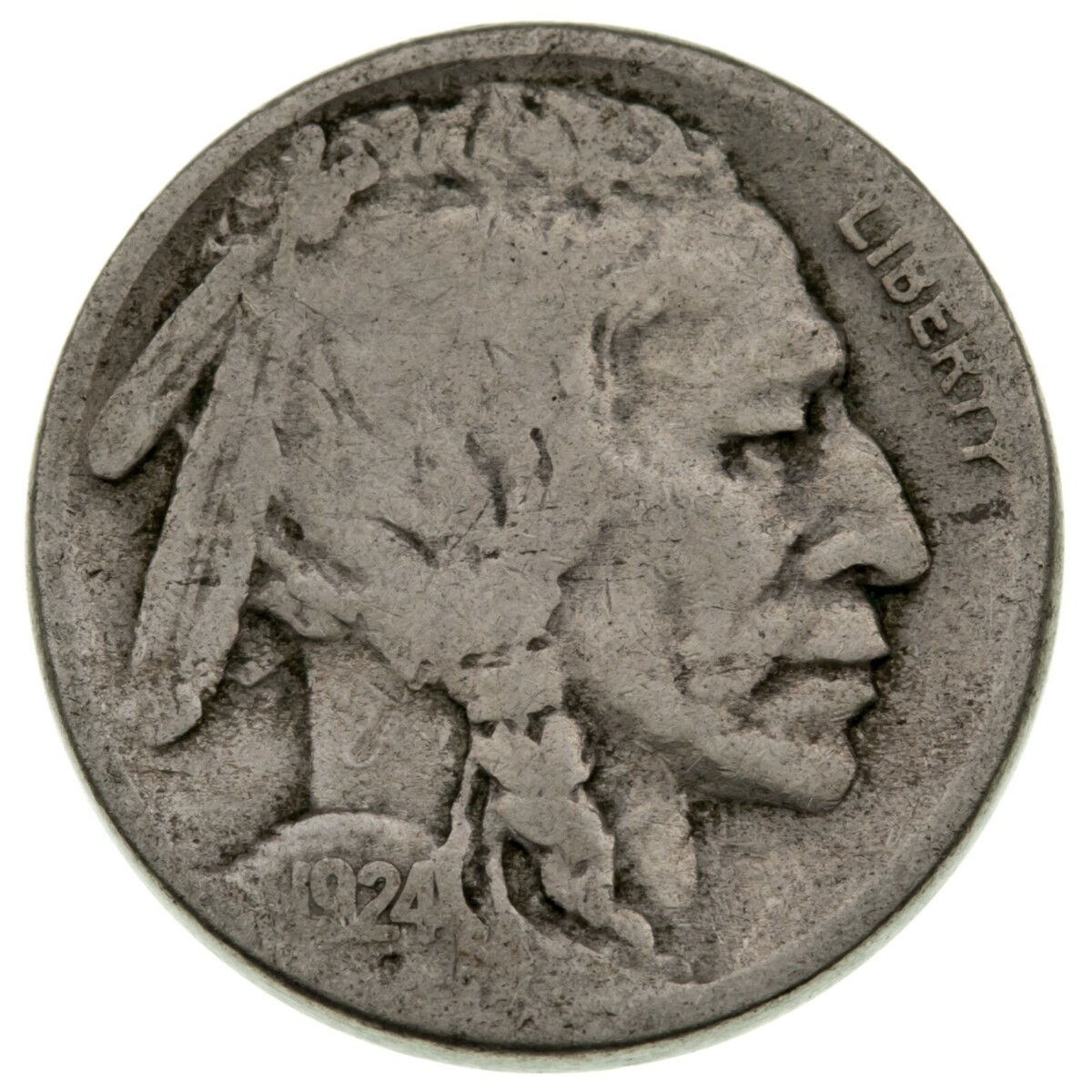- 1924-S 5C Buffalo Nickel in Very Good VG Condition, Natural Color, Some Toning