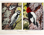 - 1927 Downy & Red Headed Woodpecker Bird Art Plate Color Book Print Wildlife F14C