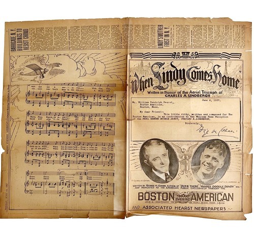 - 1927 When Lindy Comes Home Charles Lindbergh Sheet Music Newspaper Article DWHH1