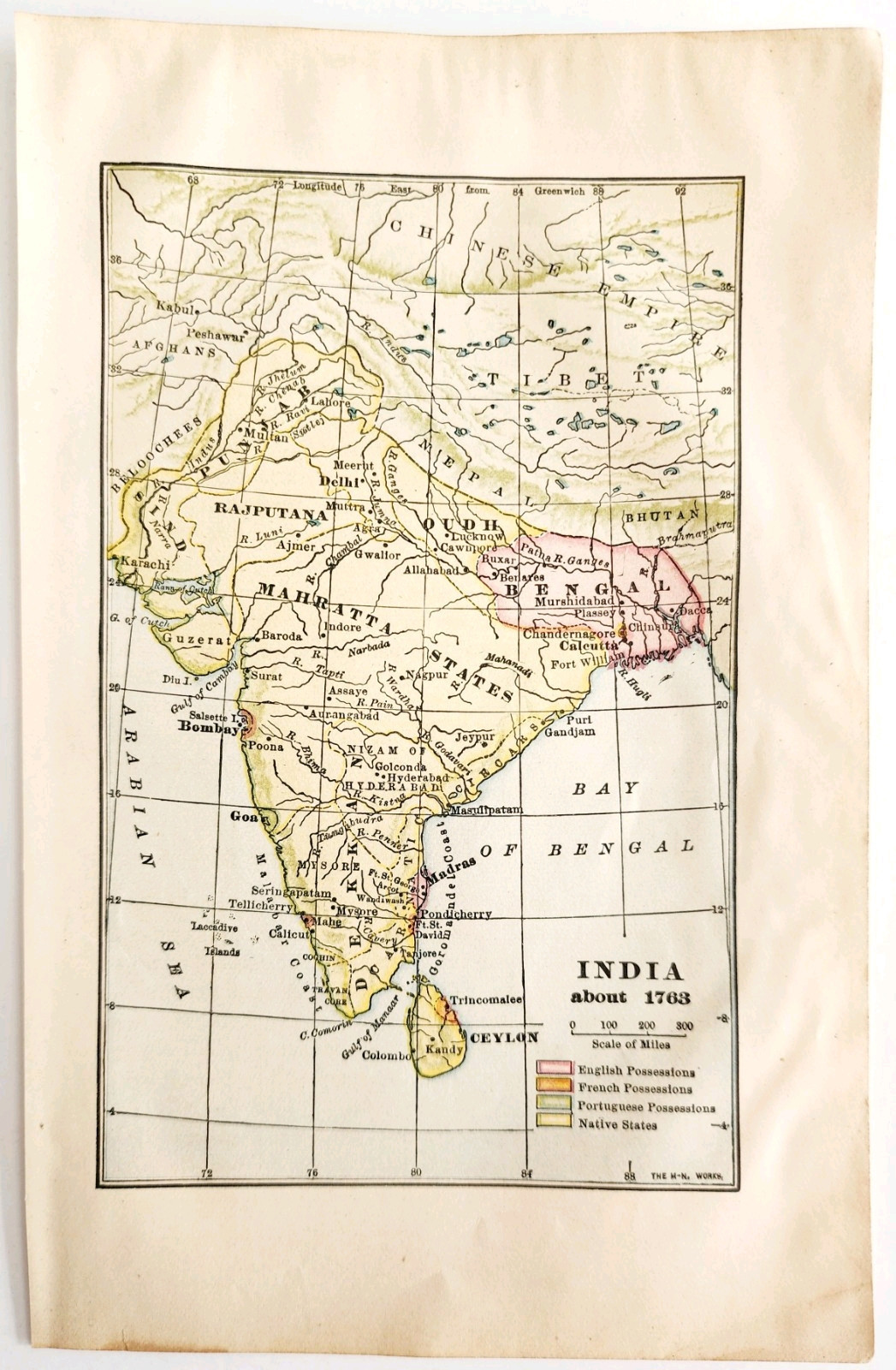 - 1929 Map India Bengal In 1763 History Of Europe Possession Areas Antique E98D