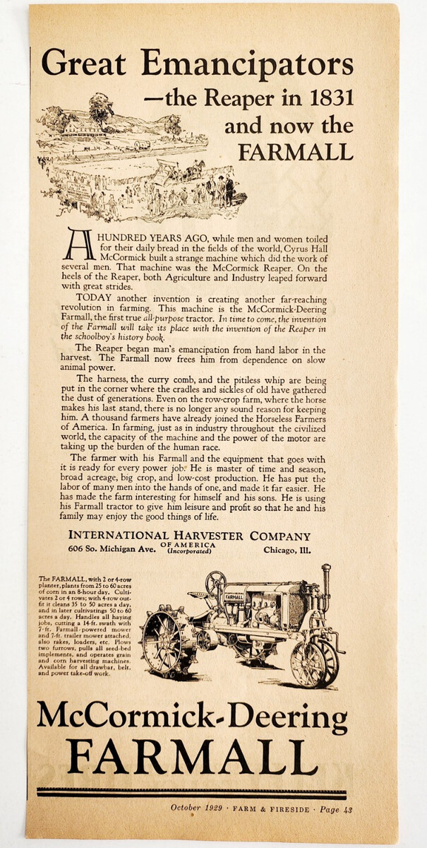 1929 McCormick Deering Farmall Tractor Advertisement Intl Harvester Farm DWY10