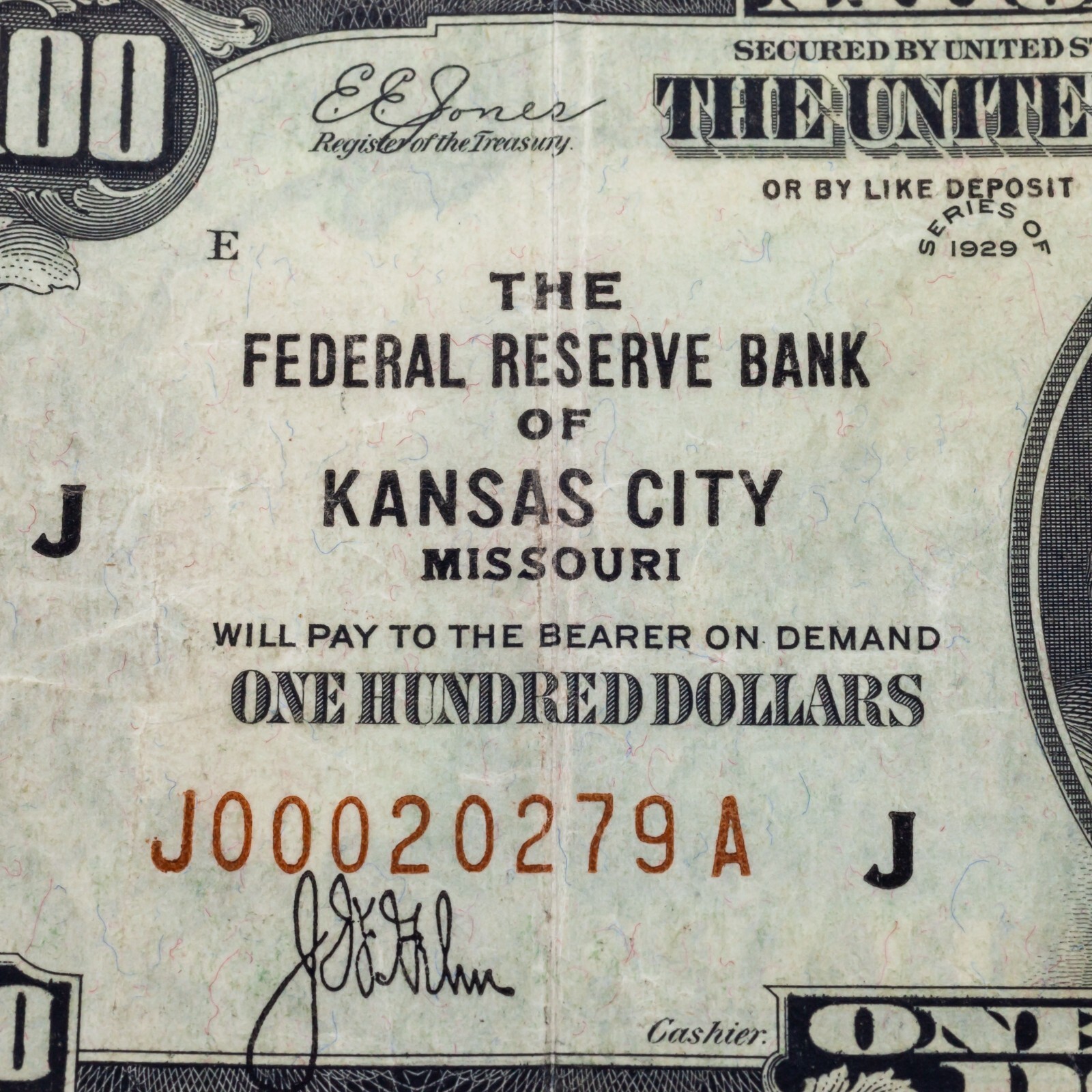 - 1929 National Currency Kansas City Brown Seal Note in VF Condition F-1890J