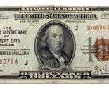 - 1929 National Currency Kansas Ville Marron Joint Remarque VF État F-1890J