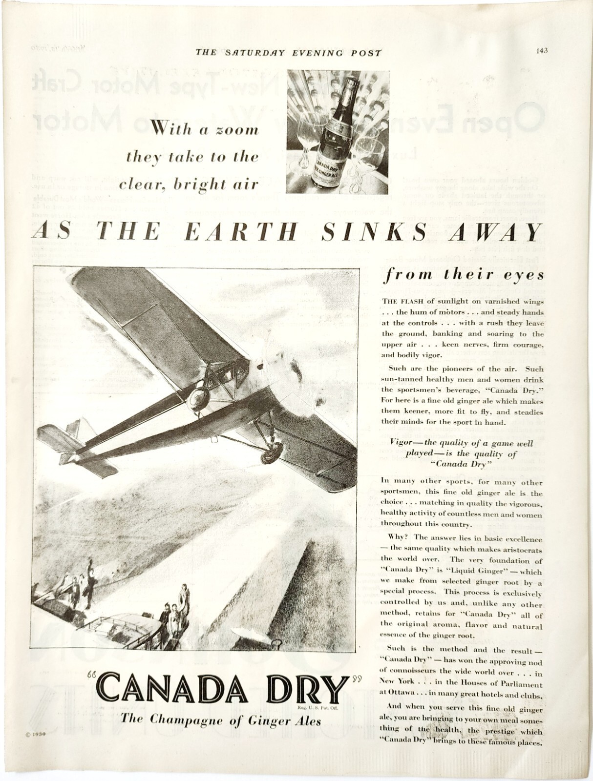 - 1930 Canada Dry Ginger Ale Advertisement Plane Aviation Soda Pop DWJJ19