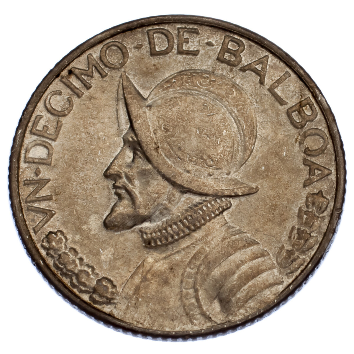- 1930 Panama 1/10 Balboa Silver coin in AU Condition KM #10.1