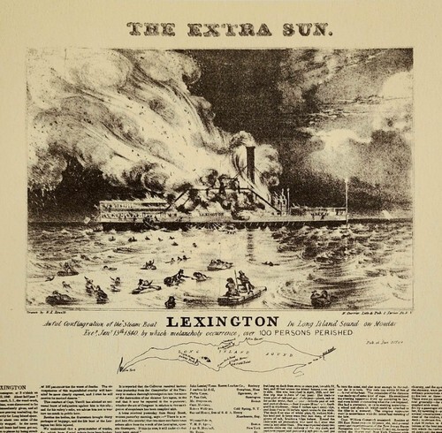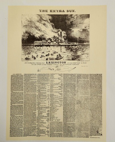 1930 Steam Boat Lexington Ship Sinks News Lithograph Print Currier & Ives Art