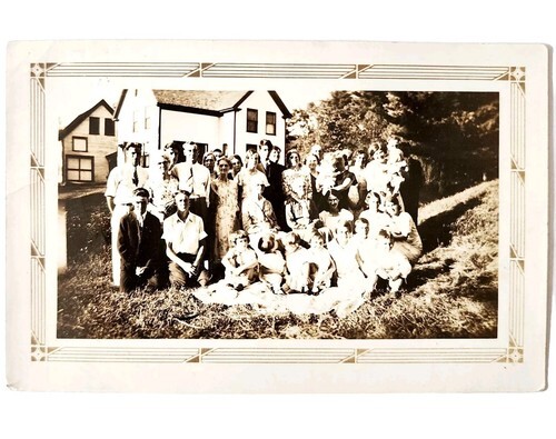 - 1931 Real Photo Farrar Family Reunion Farmhouse Photograph Antique Picture E83D