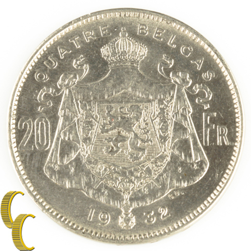 - 1932 Belgium 20 Francs (VF-XF) Position A "Des Belges" Albert Frank KM-101.1