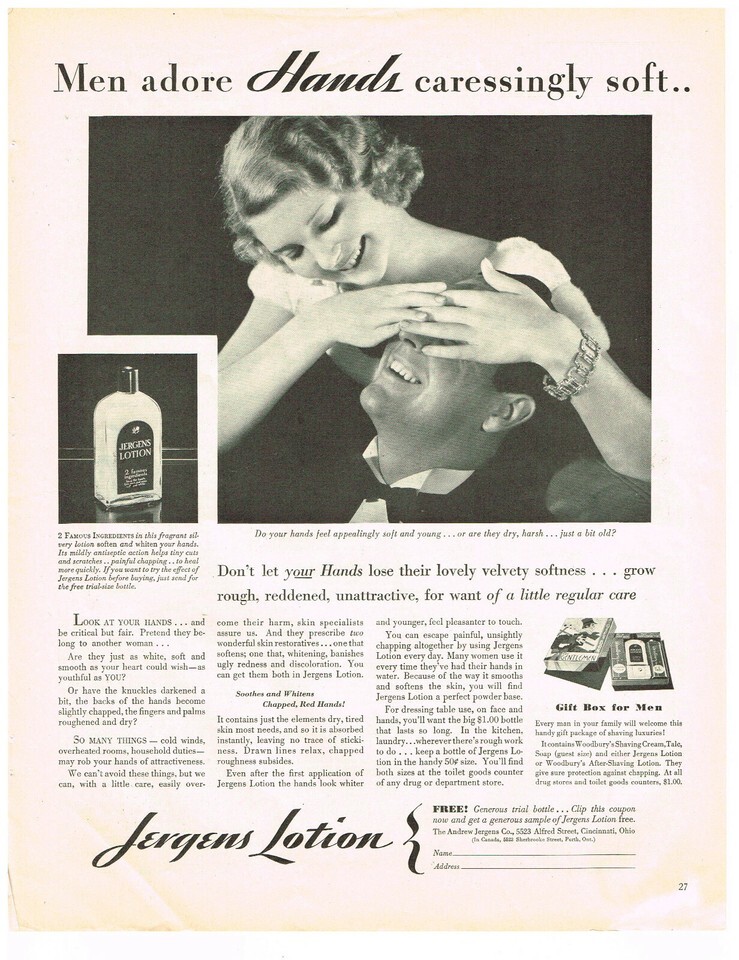 - 1932's JERGENS LOTION Art Décor Ephemera Print 30's Ad Vintage