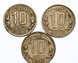 - 1937,1939 & 1940 Russia 10 Copechi (Extra Sottile,XF Condizioni) 3 Moneta Lotto