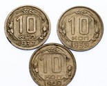 - 1937, 1939 & 1940 Russia 10 Kopeks (Extra Fine, XF Condition) 3 Coin Lot