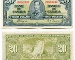 - 1937 Bank of Canada $20.00 Twenty Dollar Note King George VI J/E9983335 KGVI