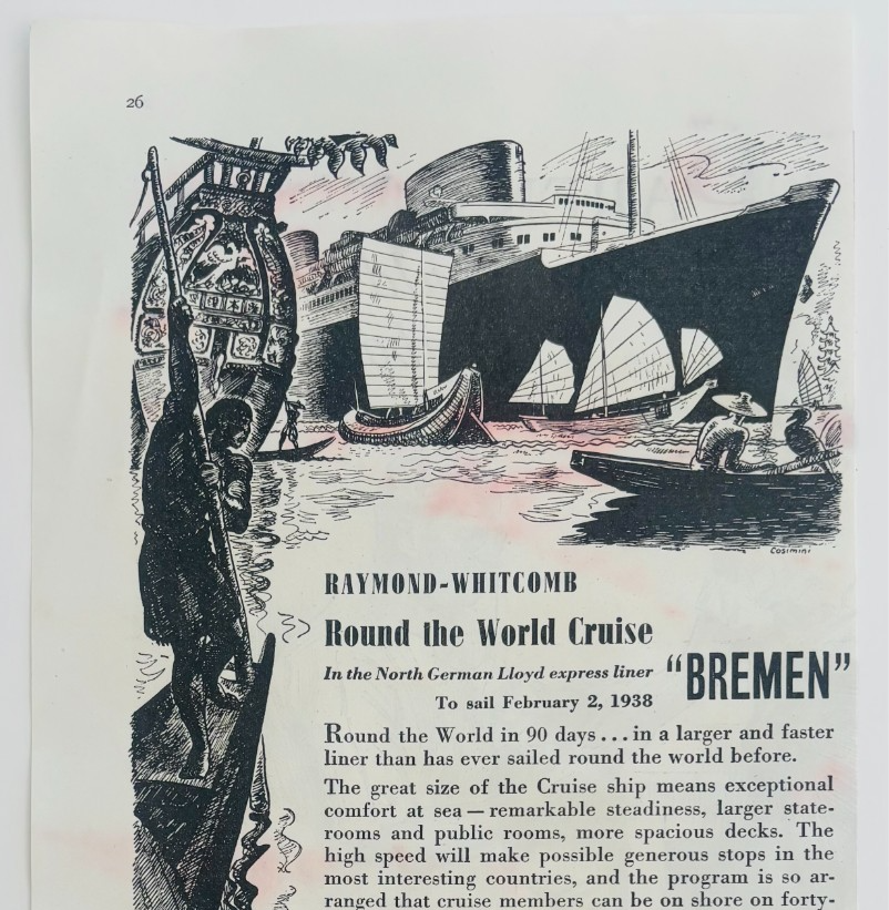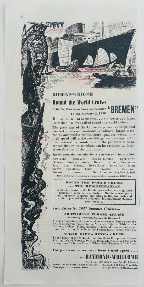 - 1937 Bremen North German Lloyd Liner Advertisement Raymond Whitcomb Cruise E90G3